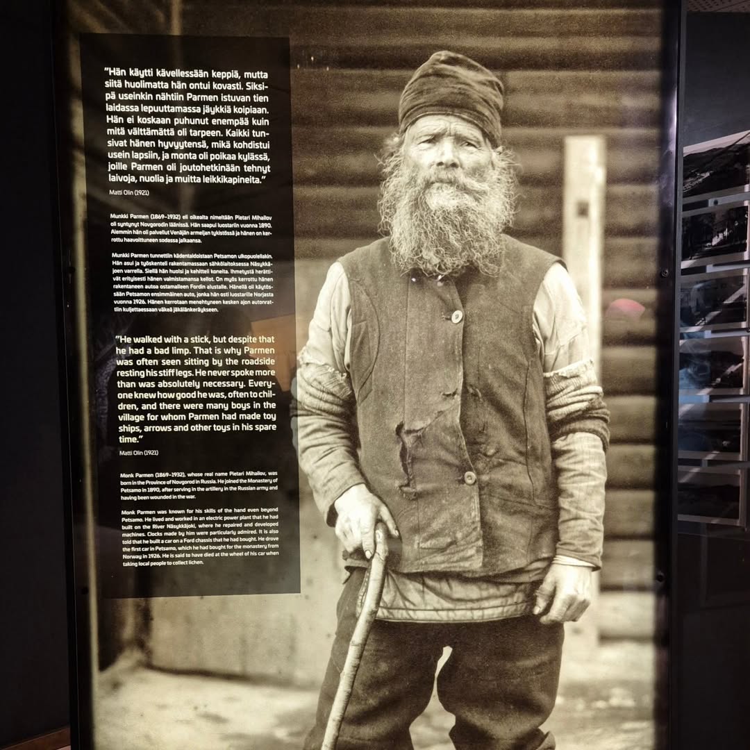 Aqui descobri a história de um russo nascido em 1869, frequentou o monastério em Petsamo. Era conhecido por fazer brinquedos para crianças e ser uma pessoa muito boa. Tinha uma barba branca. Quem será que ele era?